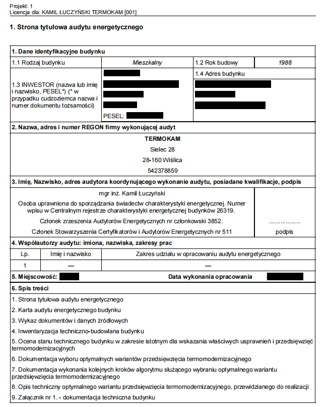 Jeśli planujesz termomodernizację, wymianę urządzeń na energooszczędne lub montaż instalacji fotowoltaicznej w swojej firmie lub gospodarstwie domowym, wykonany przeze mnie audyt może znacznie ułatwić Ci uzyskanie dotacji z Banku Gospodarstwa Krajowego.